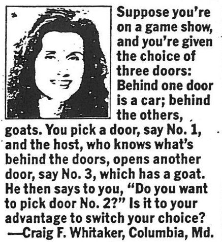 In the September 9, 1990 issue of Parade Magazine, the following question appeared in Marilyn vos Savant’s “Ask Marilyn” column: