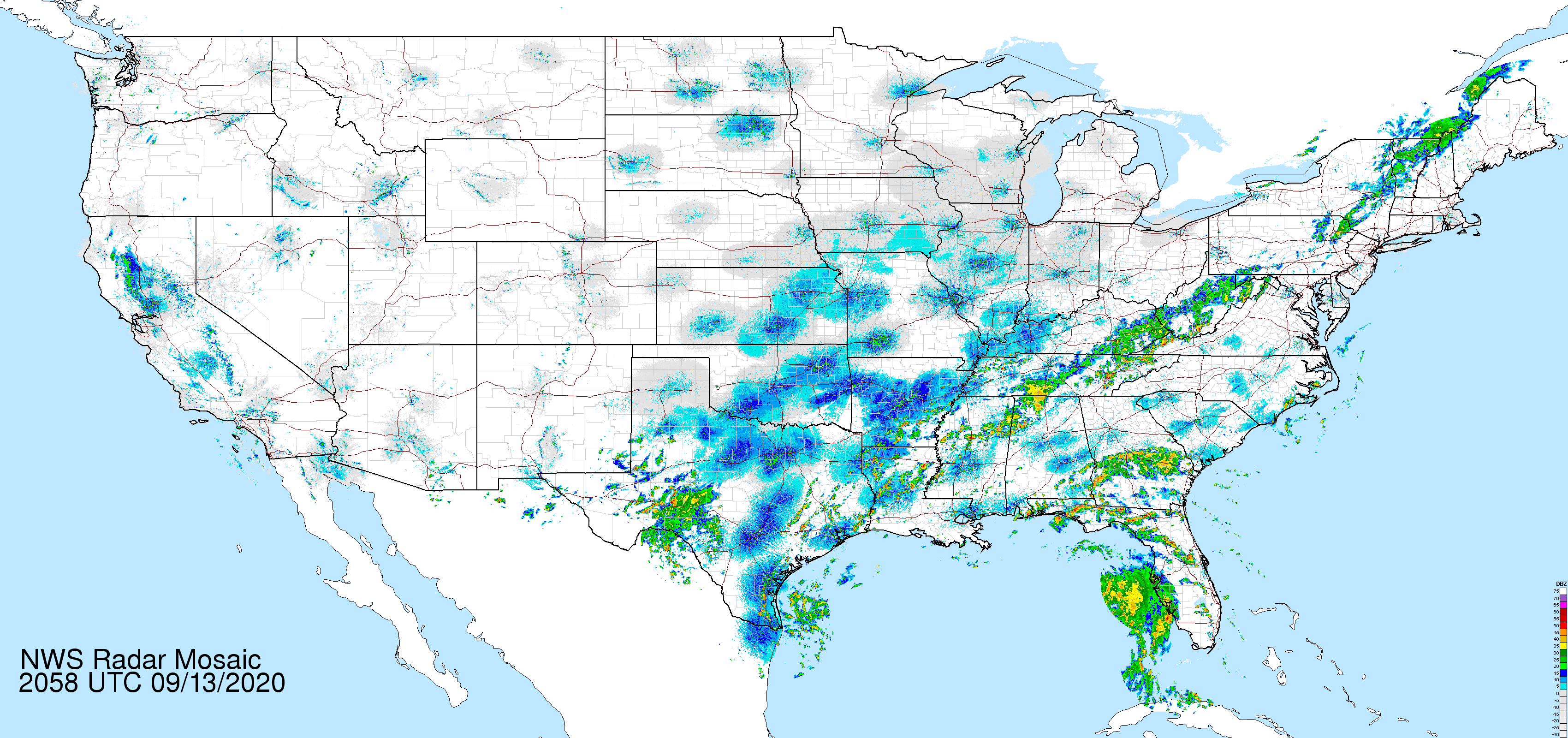 Statistical maps are designed to indicate patterns. It is tempting to infer things like spread or contagion between regions. In the case of a weather map, this is a reasonable thing to do. For example, here is a sample weather map for the United States on September 13, 2020: